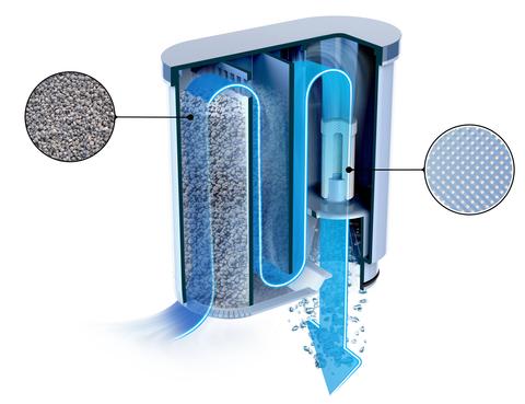 Những bộ lọc này , được đặt trực tiếp trong bình chứa nước, có khả năng hấp thụ tuyệt vời các chất độc hại trong khi vẫn giữ lại các chất florua quan trọng ảnh hưởng đến hương vị của cà phê. Bộ lọc loại bỏ canxi, khoáng chất, clo và dấu vết của chì, đồng hoặc nhôm có thể có trong nước. Việc sử dụng các bộ lọc thường xuyên sẽ làm giảm đáng kể nhu cầu tẩy cặn. Ví dụ, các máy sử dụng hệ thống Saeco Aquaclean sẽ không yêu cầu tẩy cặn cho 5000 cốc khi bộ lọc được sử dụng thường xuyên.