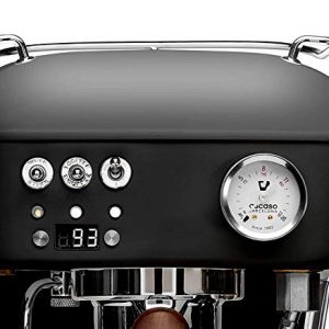Nhiệt kế bên ngoài, với thiết kế cổ điển, cho biết nhiệt độ của nhóm cà phê.