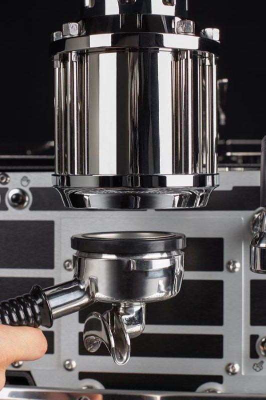 - Chiết xuất chính xác và linh hoạt: Khi thả cần gạt, bơm ngừng hoạt động, lò xo và piston sẽ đẩy nước qua bánh cà phê để chiết xuất. Trong quá trình này, đồng hồ gắn trên group hiển thị áp suất thực tại puck – không phải áp suất bơm – giúp barista theo dõi chính xác những gì đang diễn ra bên trong.
