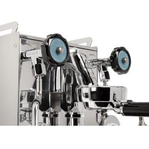 Máy được trang bị công tắc dạng rocker cổ điển cùng với các đèn LED màu hiển thị tình trạng hoạt động – một chi tiết vừa thẩm mỹ, vừa tiện dụng. Nổi bật hơn cả là núm chọn nhiệt độ brew bằng mã màu, cho phép người dùng điều chỉnh theo từng profile rang hoặc loại cà phê mà không cần thao tác phức tạp.