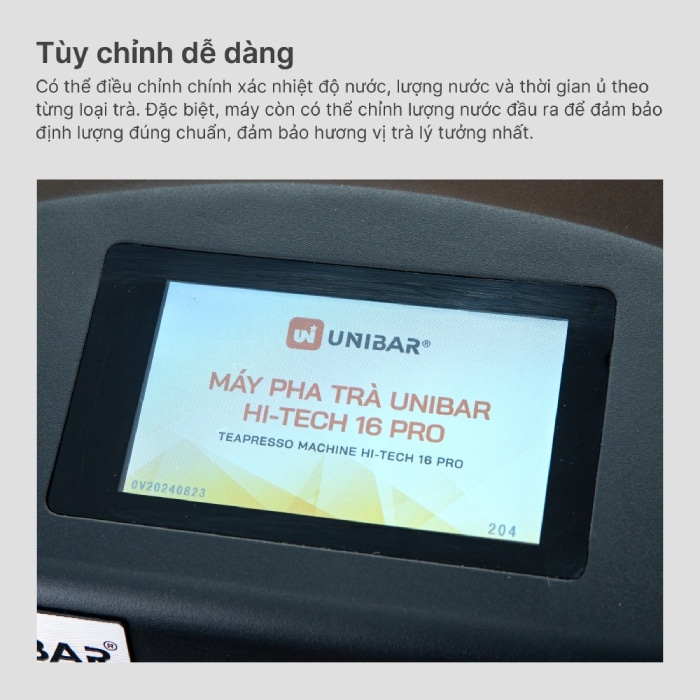 Có thể điều chỉnh chính xác nhiệt độ nước, lượng nước và thời gian ủ theo từng loại trà. Đặc biệt, máy còn có thể chỉnh lượng nước đầu ra để đảm bảo định lượng đúng chuẩn, đảm bảo hương vị trà lý tưởng nhất.