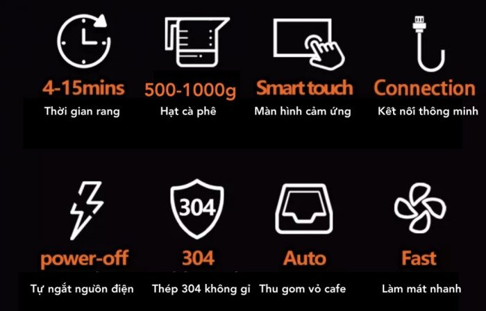 - Công nghệ rang điện tiên tiến trong 5-15 phút