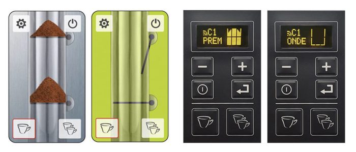 Máy mài IZAGA cho phép người dùng chuyển đổi nhanh chóng giữa hệ thống PRE-GROUND và ON DEMAND. Chế độ làm việc và trạng thái của buồng định lượng được hiển thị theo thời gian thực trên màn hình đồ họa (TFT) hoặc màn hình chữ và số (KEY).