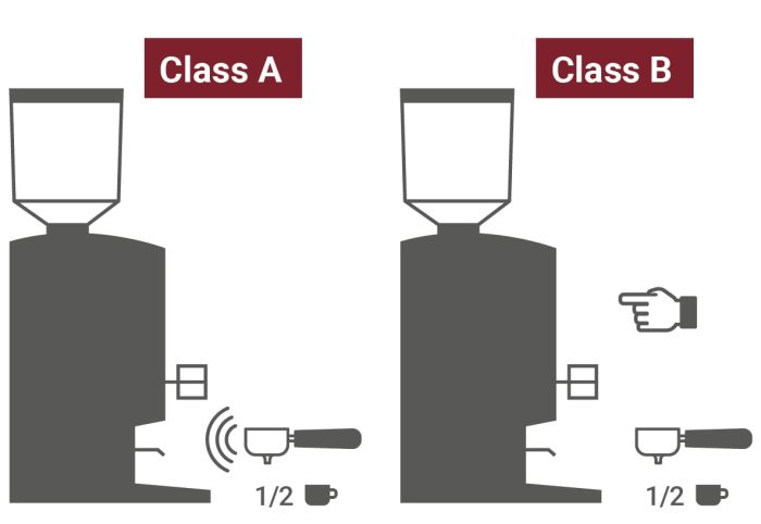 Có hai mẫu máy xay cà phê QUIMOA: Loại A: Đi kèm với hệ thống phát hiện bộ lọc cổng đơn và đôi tự động tích hợp sẵn để mang lại sự thoải mái tối đa mà không gặp lỗi về liều lượng. Loại B: Cho phép bạn chọn 1 hoặc 2 loại cà phê theo cách thủ công. |