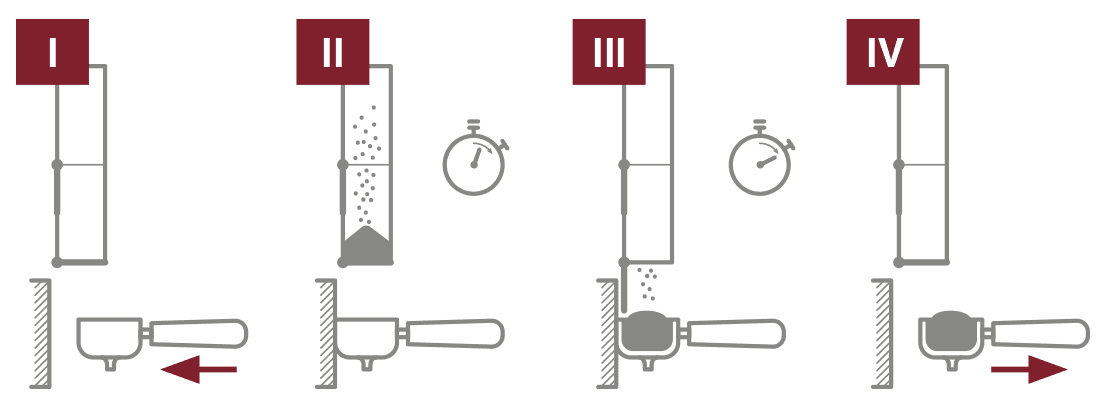 Hiệu suất tối đa trong giờ cao điểm. Ở chế độ Pre-Ground QUIMOA, 1 hoặc 2 liều cà phê có sẵn trong máy xay. Khi bộ lọc porta yêu cầu, liều thuốc sẽ được phân phối ngay lập tức. |