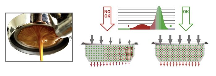 Sự phân bố cân bằng của các vi chất trên portafiltre cho phép chiết xuất cà phê đồng nhất để đạt được hiệu suất tối đa. |