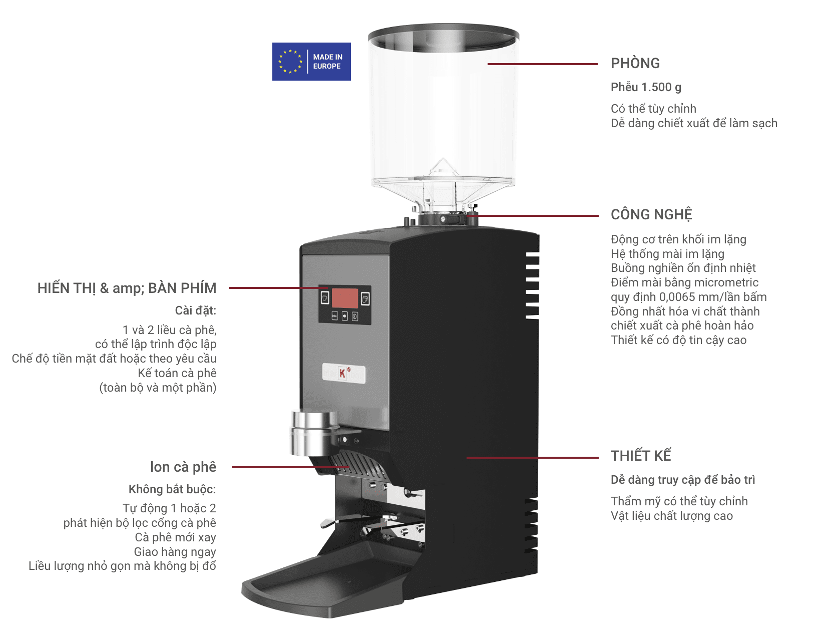 - Máy xay cà phê Markibar IKONA PRO: Đây là dòng máy xay cà phê cao cấp nhất của Markibar, được thiết kế dành cho các quán cà phê chuyên nghiệp.