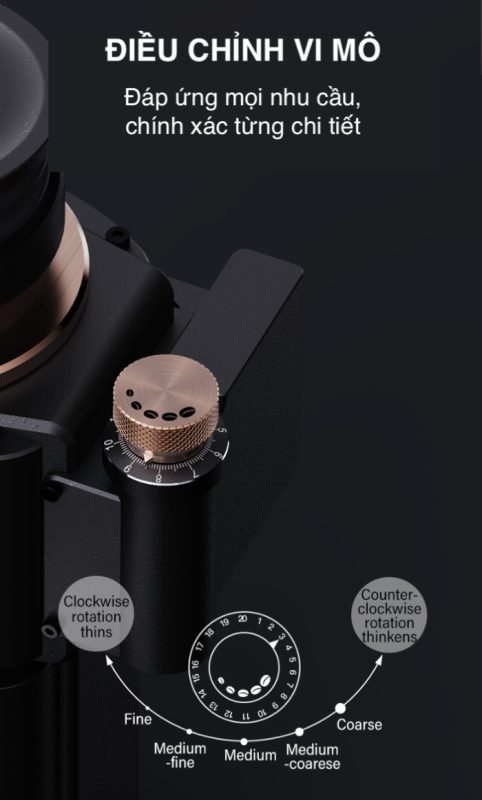 Một ưu điểm nổi bật của Wendougee MILO là khả năng điều chỉnh độ mịn cực kỳ chi tiết, cho phép barista dễ dàng kiểm soát kích thước hạt xay. Điều này đặc biệt quan trọng với espresso, nơi chỉ cần một thay đổi nhỏ cũng ảnh hưởng lớn đến hương vị.