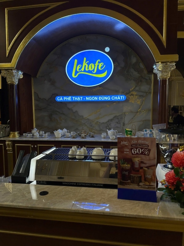 Tất cả tạo nên cảm giác như bạn đang bước vào một cung điện thu nhỏ – nơi từng chi tiết đều được chăm chút kỹ lưỡng, toát lên sự đẳng cấp và tinh tế. Không gian rộng rãi, trần cao cùng gam màu trắng – vàng chủ đạo càng khiến Lekofe thêm phần uy nghi và lộng lẫy, đúng chất “hoàng gia” mà quán muốn mang đến.