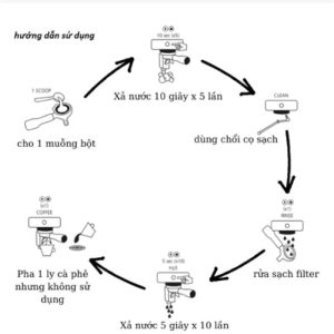 Lặp lại 5 lần, sau đó tháo tay cầm ra, xả nước group head sạch.